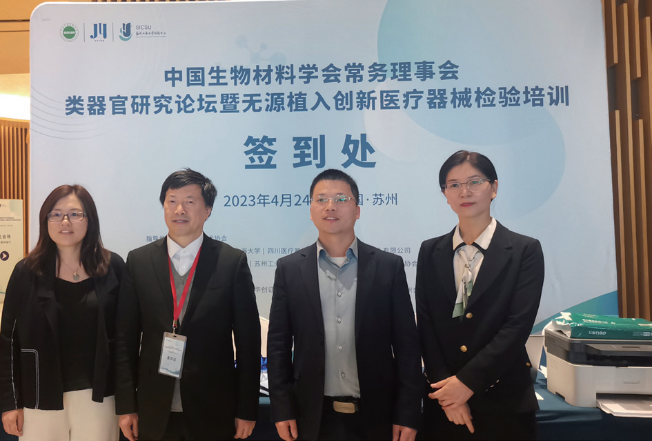 长三角生物医用材料与器械产创联盟核心工作人员:杨希峰秘书长、刘昌胜院士、杨盛兵副秘书长和井莹莹副秘书长(从左到右)