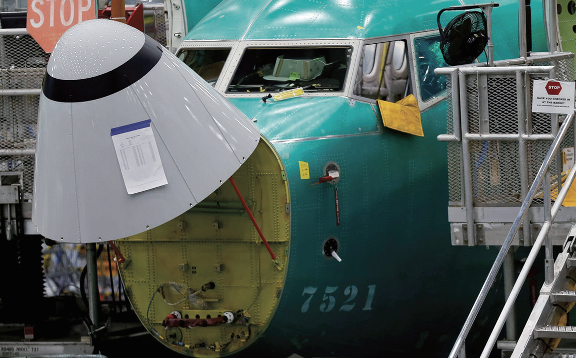 波音737MAX于2018年在英国范堡罗国际航展上亮相,但在随后几个月发生两起致命事故后,该机型很快被停飞。737MAX使用更大、更省油和更安静的发动机更新了早期的设计,但它们的尺寸需要将发动机安装得更靠前、更高,这对飞机在某些飞行条件下的操控性产生不利影响