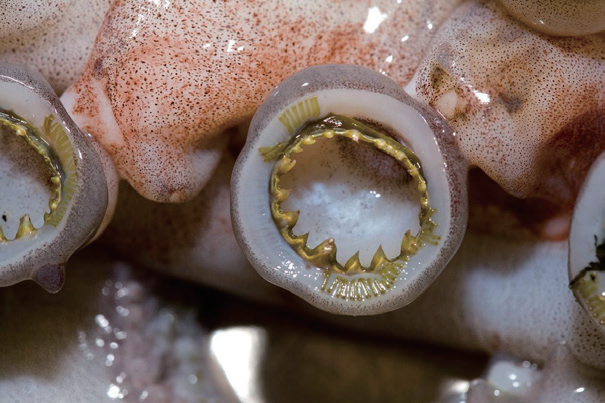 帽贝牙齿或许可摘得最强悍生物材料的桂冠,但拥有神兵利齿的海洋生物不止它。鱿鱼触手吸盘上的牙齿有望启发新型自愈材料。