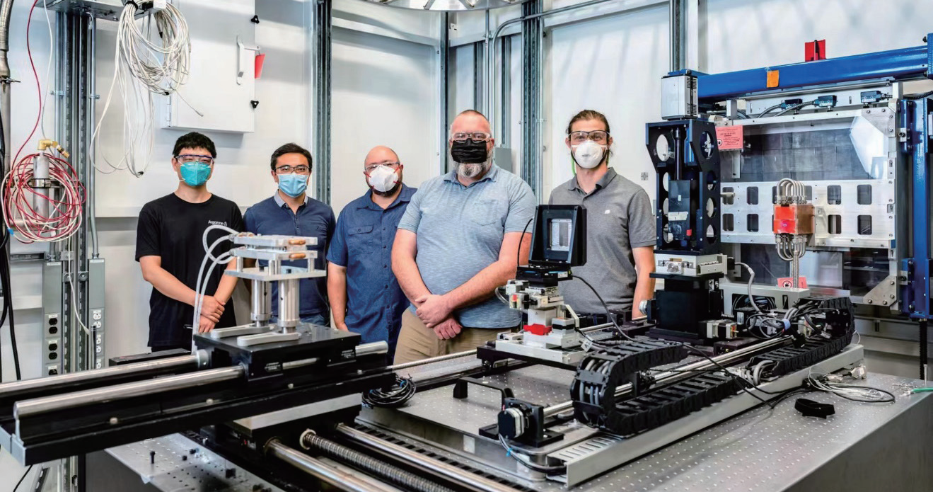 乔洽(左一)在美国阿贡国家实验室先进光子光源实验装置前与团队成员合影