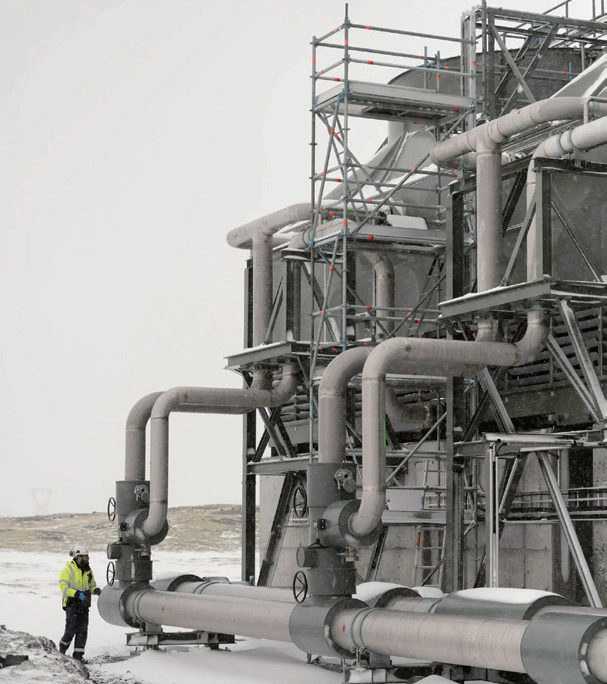 北欧峡湾刮来了寒风,温度不超过零度,埃达 · 阿尔多蒂尔(Edda Aradottir)顶着寒风穿过新鲜的雪地,去检查位于冰岛的一座空气直接捕获工厂?。