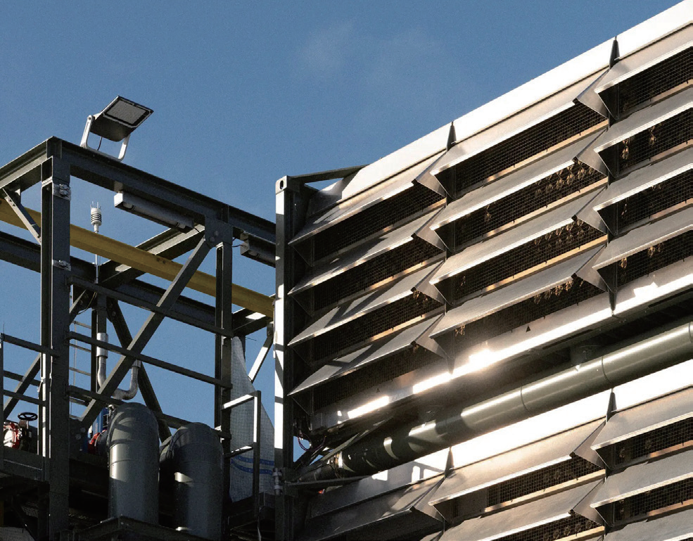 在一系列类似地堡的建筑内,数十个巨大的风扇将空气吸入装有化学颗粒的箱子内。这些化学颗粒会吸收二氧化碳,然后在加热时释放气体。接着,这些二氧化碳就会和水混合并且被泵入超过1.6千米深的地下。在那里,极大的压力会在几年内将二氧化碳变成固体,这个过程称为“矿物化”。此时,从效果上说,二氧化碳就变成了岩石的一部分。