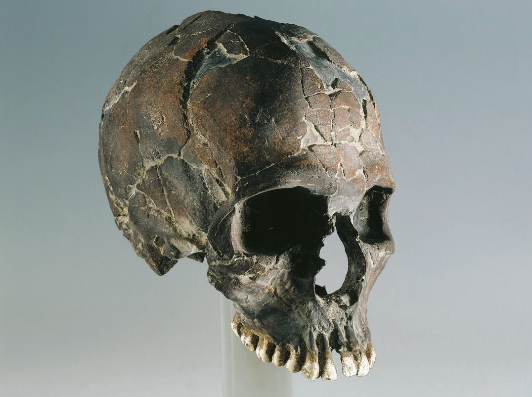 在以色列卡夫泽遗址发现的一具头骨,被认为属于智人