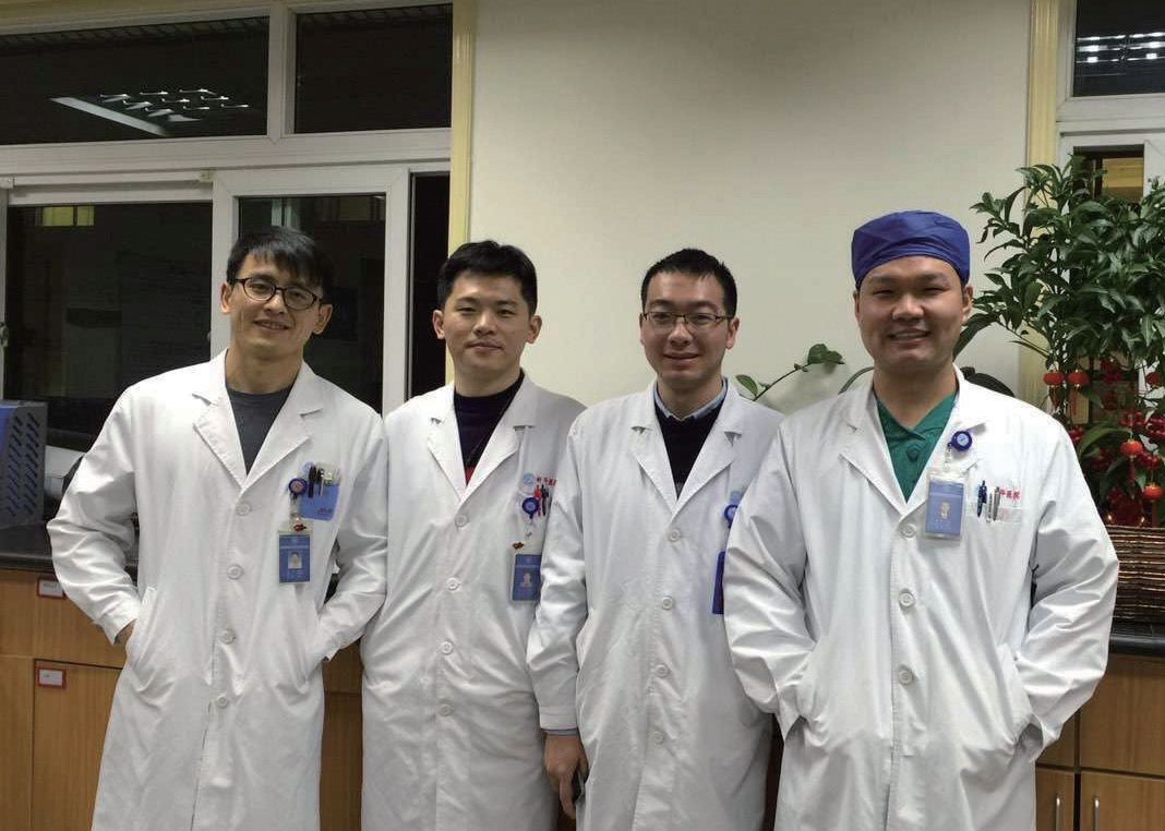 是时,我比约定时间提前几分钟来到新华医院19号楼心胸外科病区,在等姜医生时看了走廊里有关他们科室的介绍。得知在科主任梅举教授的带领下,新华医院心胸外科团队近年来在国际上创新实施了全胸腔镜超微创外科治疗房颤的手术术式(梅氏微创房颤消融术)、微创二尖瓣手术同期消融钳治疗合并房颤术式,已完成各类心脏瓣膜手术、冠脉搭桥术(微创和常规搭桥)、胸部大血管瘤手术及先天性心脏病手术上万例。摄自2010年的员工合影中,站在第一排边上的姜兆磊彼时还在读硕士,一名青涩医学生的模样。而此刻迎面走来的姜医生已是一位成熟稳重的翩翩医者。坐定后,我问起他的微信名前加有Andy(安迪)前缀的涵义,他说确有来历,那是他博士期间(2014年)到美国印第安纳普渡大学研习时,中文姓名的英文发音比较不易念准,于是就想到加一个前缀,Andy是他喜欢的歌手刘德华的英文名,多年来刘德华以自己的人品、歌声赢得了无数歌迷,姜兆磊是其中之一,所以在考虑对外交流的英文名时,首先就想到了Andy一词。