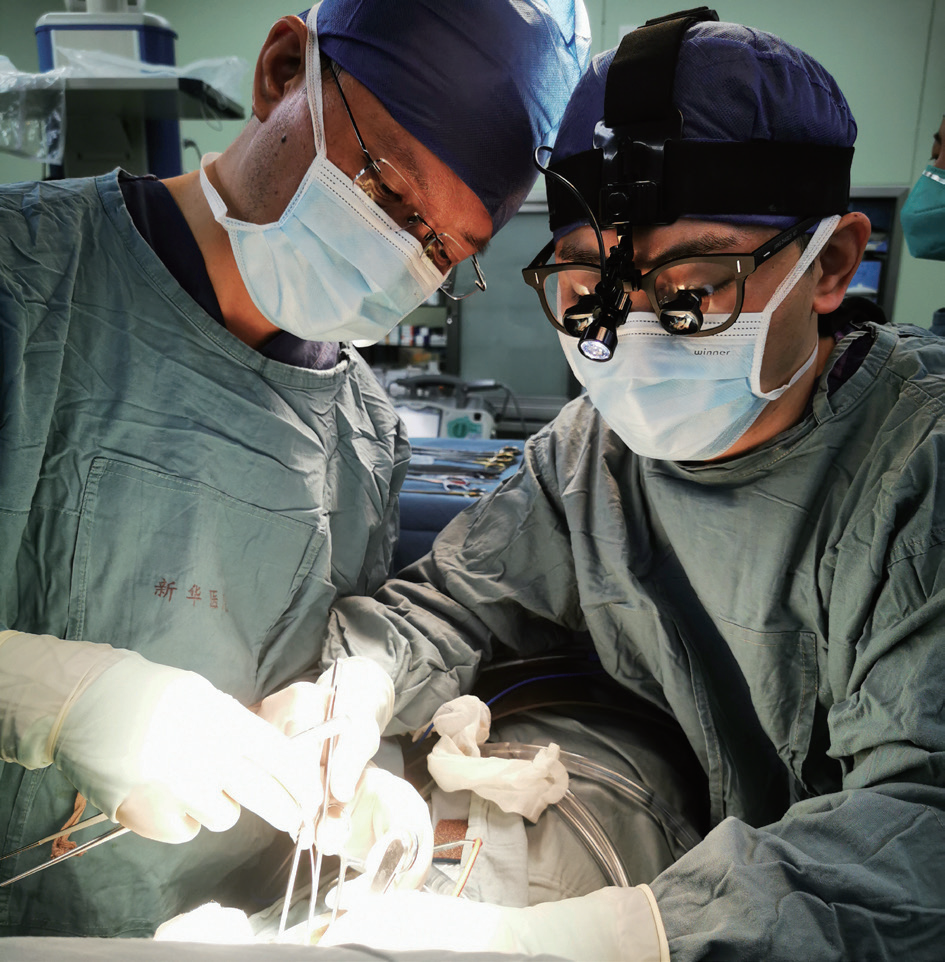 手术中的姜兆磊(右)