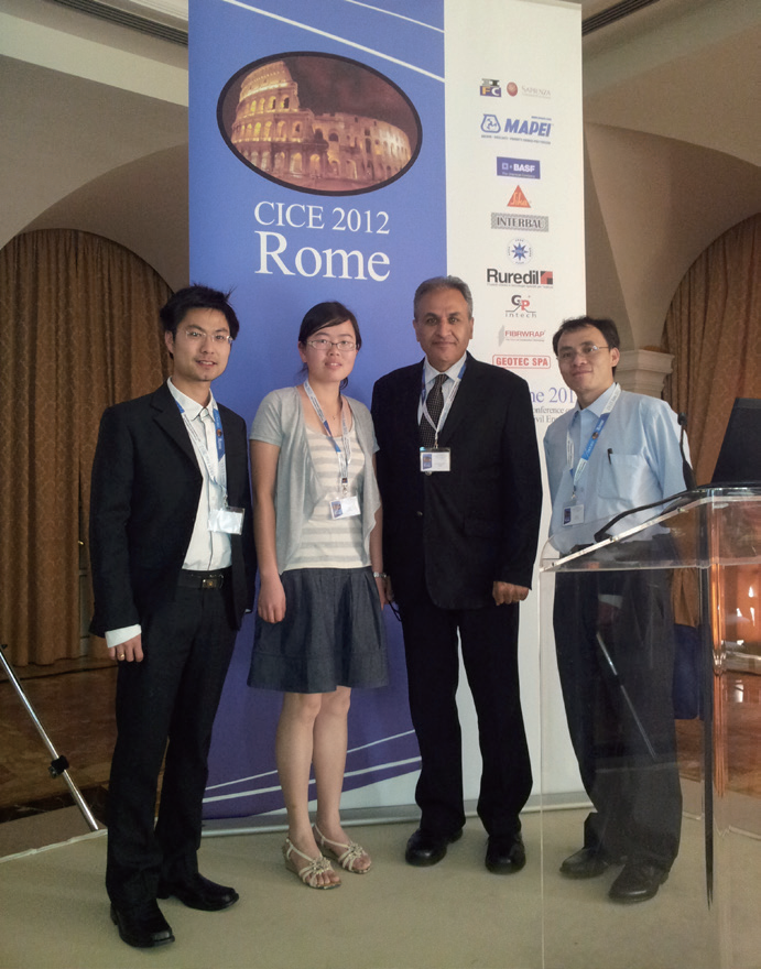 2012年,在意大利米兰参加第六届土木工程纤维增强复合材料国际会议,与导师赵晓林教授(右一)等合影