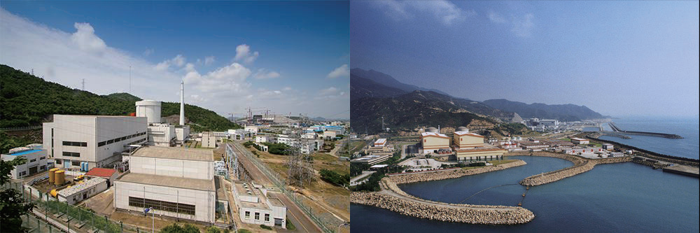 秦山一期(左)和大亚湾核电站(右)