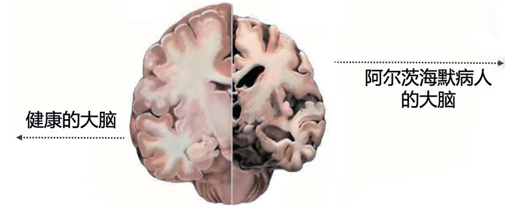 阿尔茨海默病是一种神经退行性疾病,一般65岁以上起病。它会慢慢侵袭我们的大脑,把正常饱满的大脑逐渐变成“风干的核桃”,实质体积逐渐变小,沟壑变深,不断退化。临床上表现为记忆力减退,语言功能障碍,执行功能障碍,思考能力下降,自理能力也将受到影响。随着疾病发展,还会出现狂躁易怒攻击等精神行为异常。