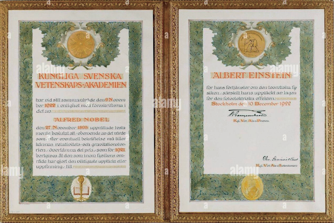 爱因斯坦的诺奖获奖证书