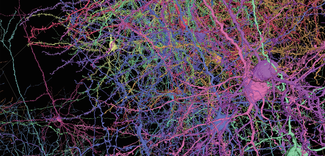 Microns项目中绘制的小鼠大脑部分区域的复杂结构