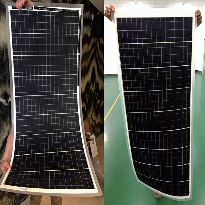 取得“从 0 到1”科研成果突破的同时,团队还在量产线上成功验证了工艺放大生产的可行性。相较于传统的双玻组件,相关柔性光伏组件的质量功率比值下降了 95% 以上。目前,这种大面积柔性光伏组件已在临近空间飞行器、建筑光伏一体化和车载光伏等领域成功应用,并在众多领域表现出应用潜力,例如空间应用、绿色建筑、便携式电源等。此外,柔性硅电池还可代替感光材料用作机器人的眼睛,甚至在仿生领域也有应用的可能。
