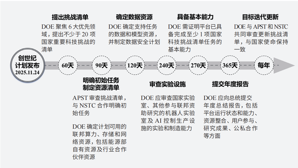 2025年11月24日,美国总统特朗普签署行政命令启动“创世纪计划”(Genesis Mission),旨在整合全美的计算资源和科学数据,利用科学智能(AI4S)创造更高效率、更具突破性的科学发展新模式,确保美国的科技竞争优势地位。白宫将“创世纪计划”与历史上的“曼哈顿计划”相类比,以强调其重要意义,该计划标志着美国人工智能国家战略的重大转型。美国以举国之力争夺AI4S发展先机,试图重塑“美国优先”的全球科技版图,对我国建设世界科技强国提出了新的重大挑战。
